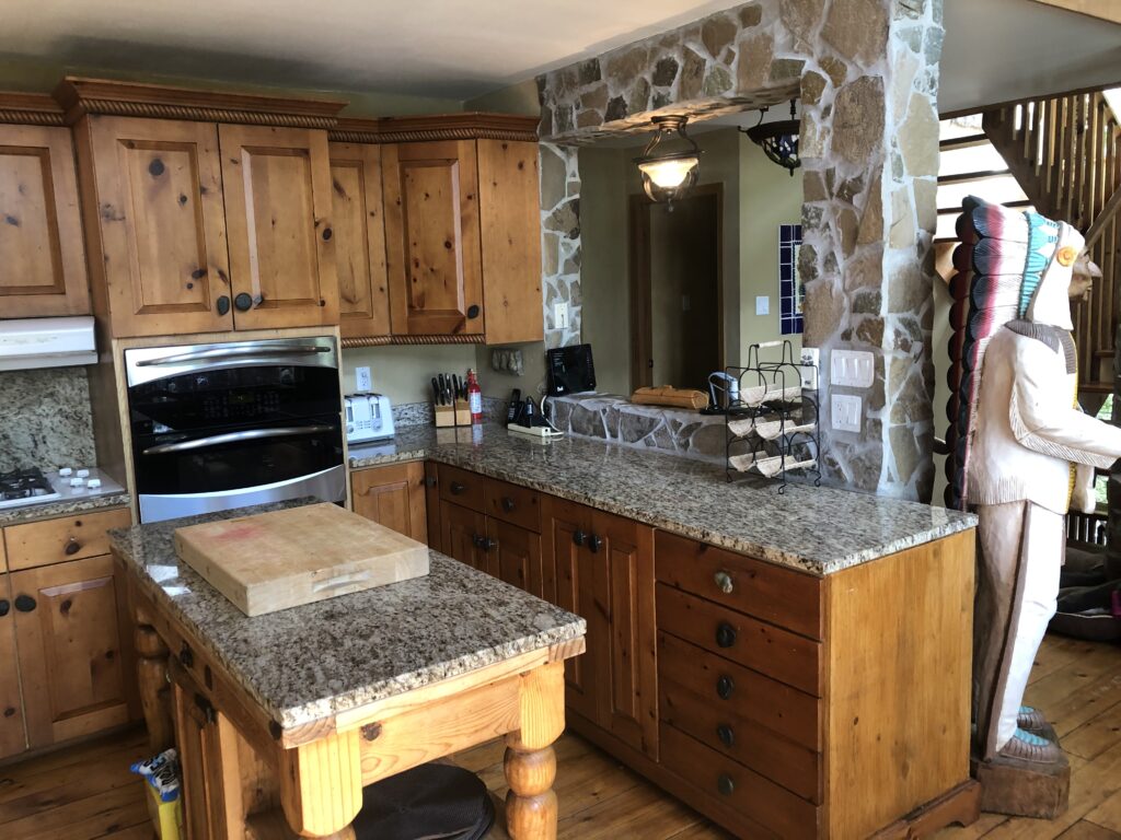 Casa Manana cottage is very secluded and is located on the East shore of prestigious Sandy Lake. It’s a 3,000 sq. ft. cozy A-Frame style finished with a unique South-Western/Navajo decor. It has a 20ft. high vaulted pine ceiling in the living room/dining room area, and stunning panoramic views of the Lake and sunset. Casa Manana has seven bedrooms, a living room with a stone fireplace, a gourmet kitchen with new stainless steel appliances and granite countertops, dining room, family room, three 4-piece bathrooms, and a screened-in porch. It is surrounded by 1,100 sq. ft. of deck overlooking the lake.